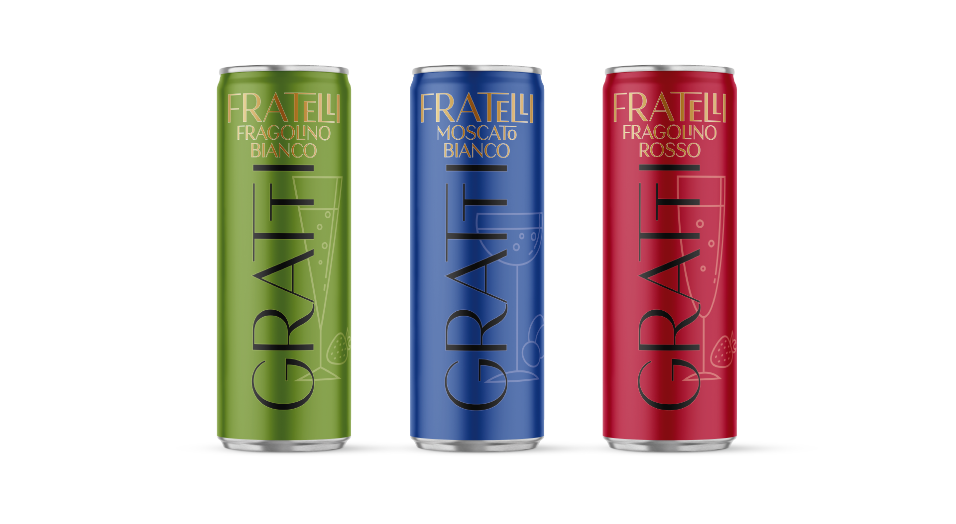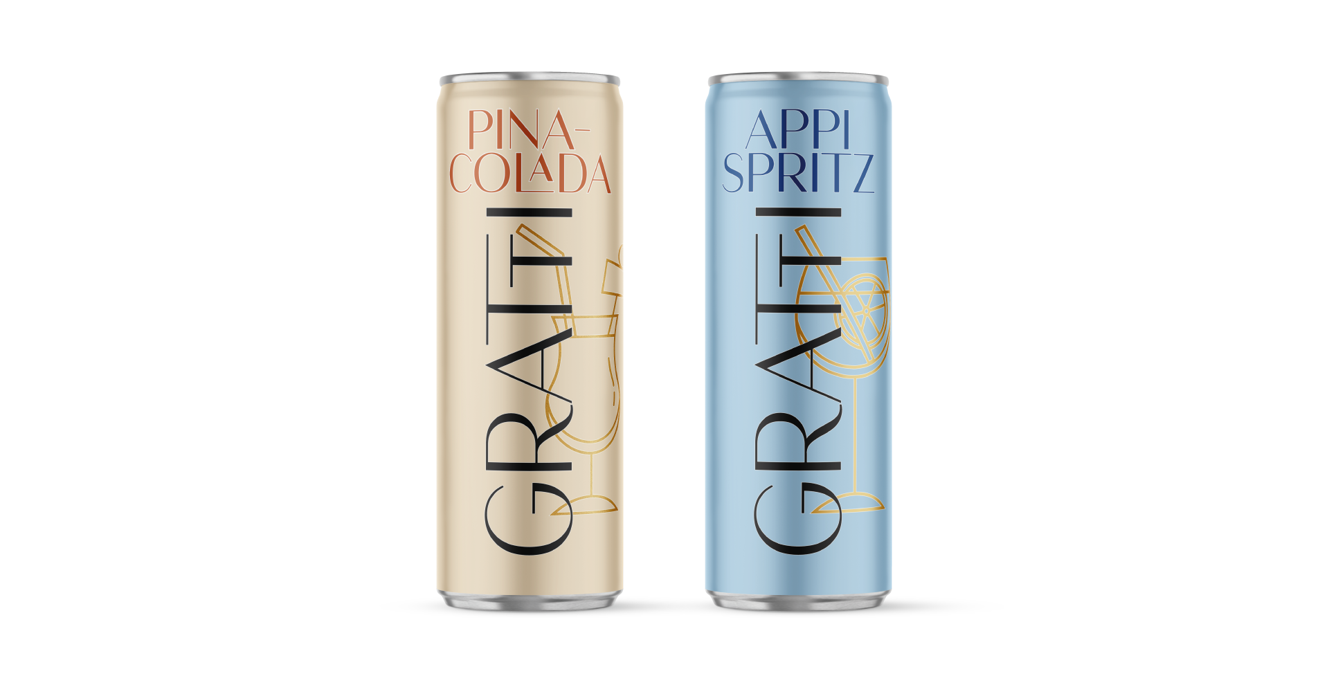A series of low-alcohol beverages wrapped in clean aluminum cans. Bold vertical lettering and minimal graphics emphasize clarity and elegance.